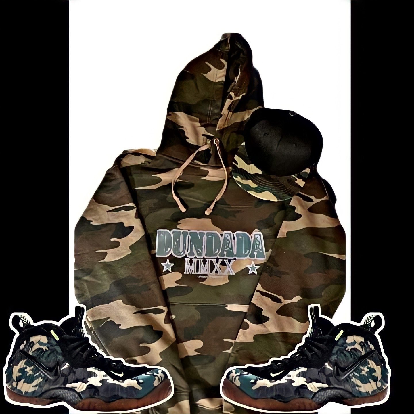 Custom Camo Hoodie with Camo Hat and Nike Air Foamposite Pro Green Camo by DUNDADA™ “MMXX Urban Fashion”