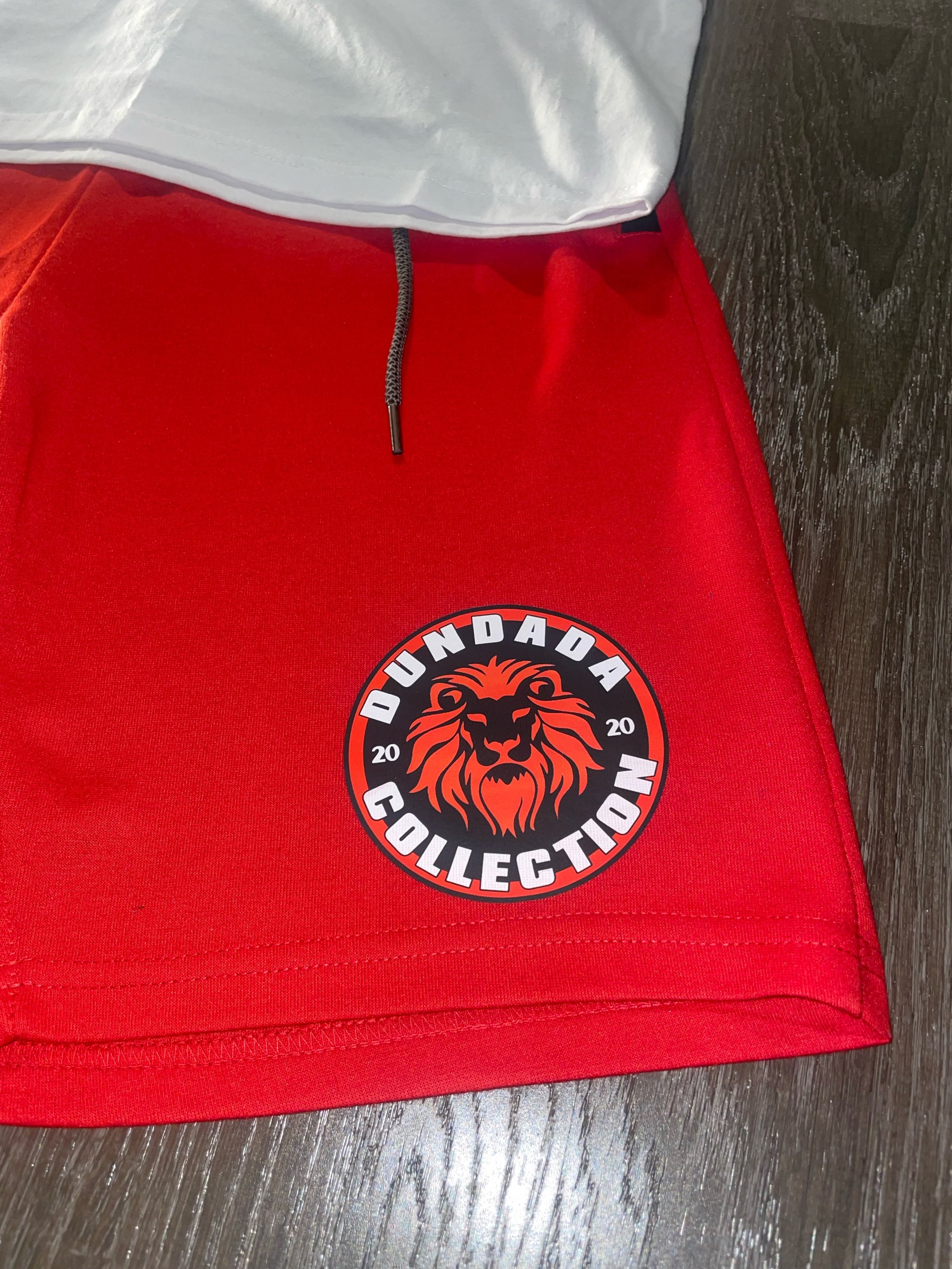 Dundada Collection Retro Style White T-Shirt and Red Short Set w/ SnapBack Hat.