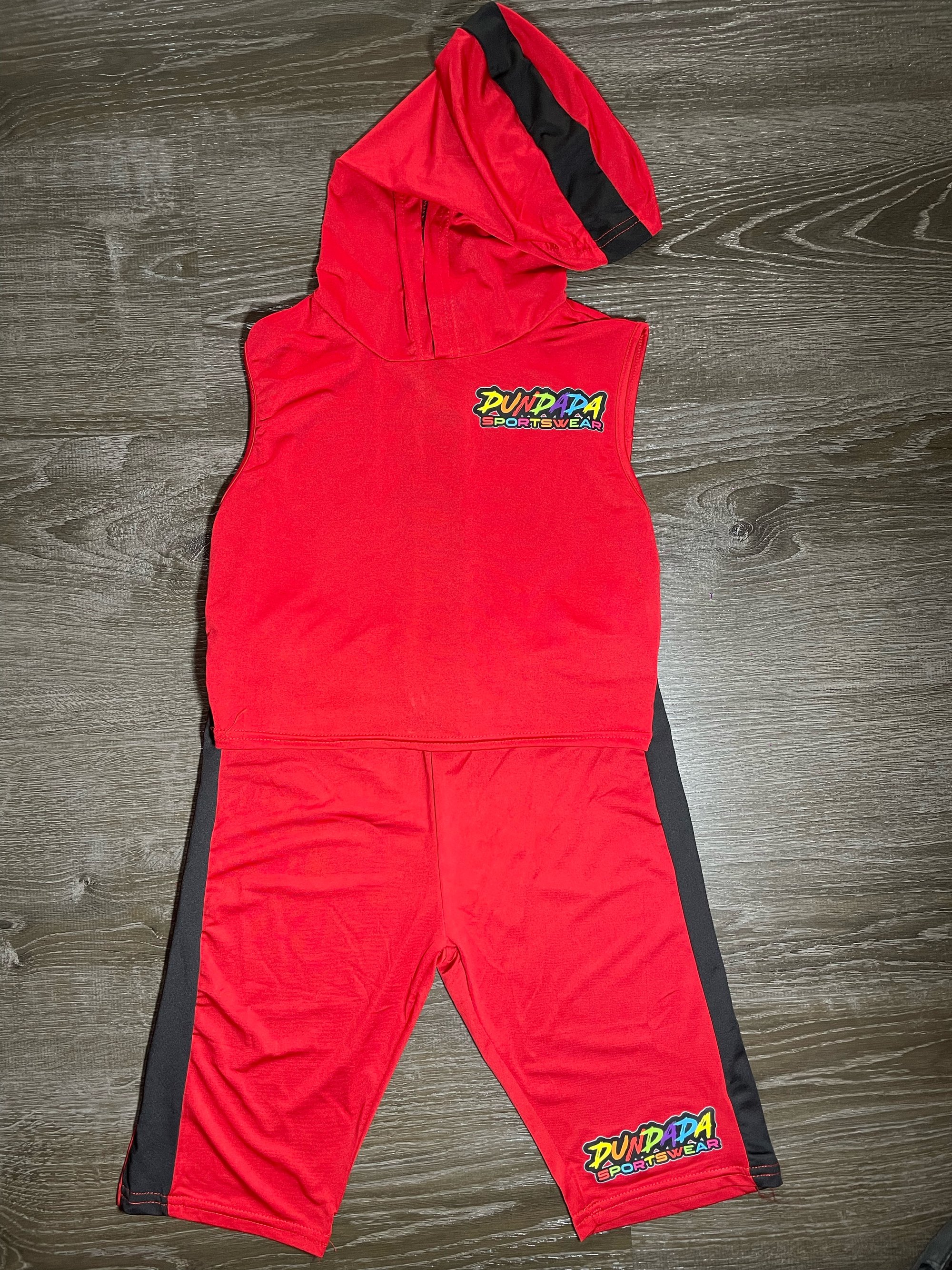 Dundada Sportswear Red Two Piece Sleeveless hooded Top & Short Set Women’s.