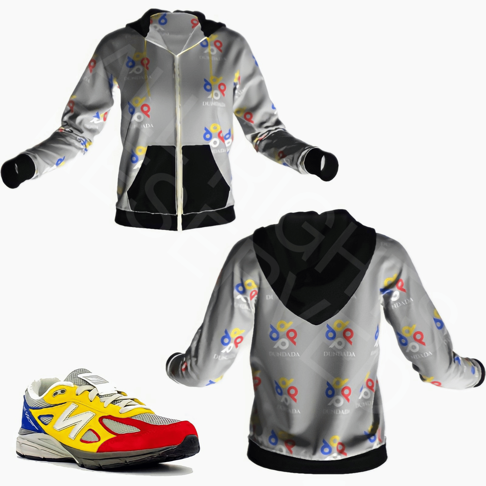 Premium quality, soft, cozy zip-up, adjustable white drawstring, white zipper line, kangaroo pocket, ribbed cuffs and waist. Comfortable and warm stylish hoodie by Dundada.