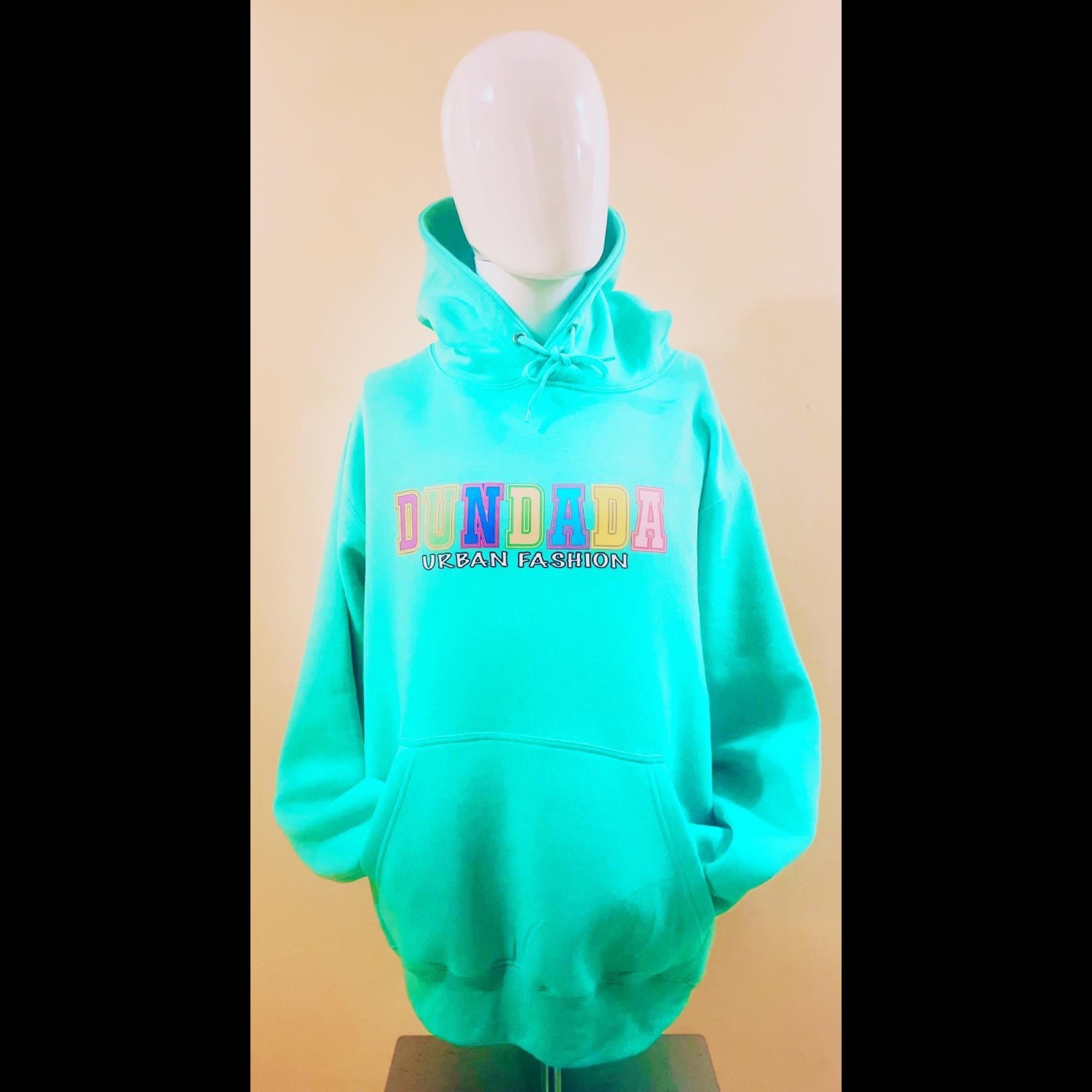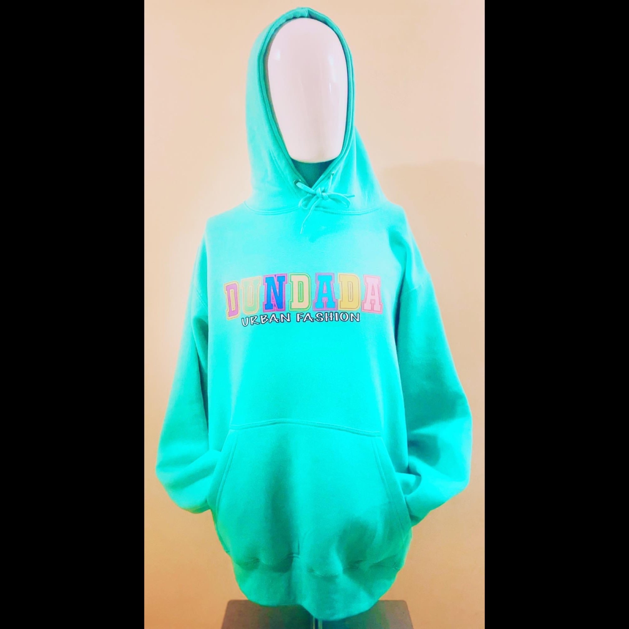 Turquoise pullover hoodie. Soft feel, stylish and generous fit for comfort.